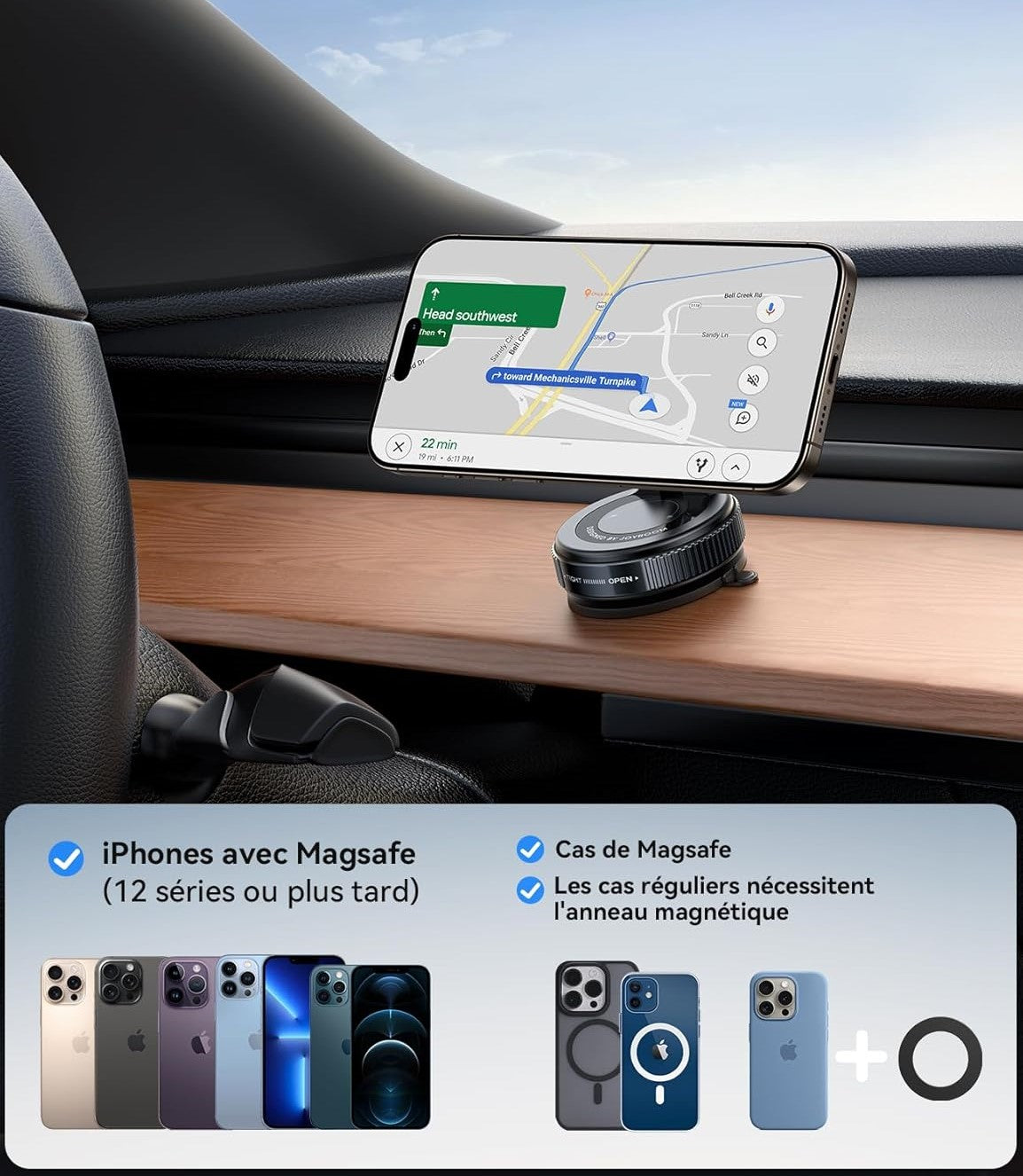 Oui, ce support est compatible avec tous les smartphones, y compris les modèles sans MagSafe. Un anneau métallique est inclus pour assurer une fixation magnétique solide, garantissant une utilisation optimale pour votre appareil, quelle que soit sa marque.